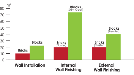 AAC Block vs Brick (m²/ workers/ day)
