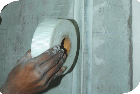6) Apply jointing material and fibremesh tape to the surface joint